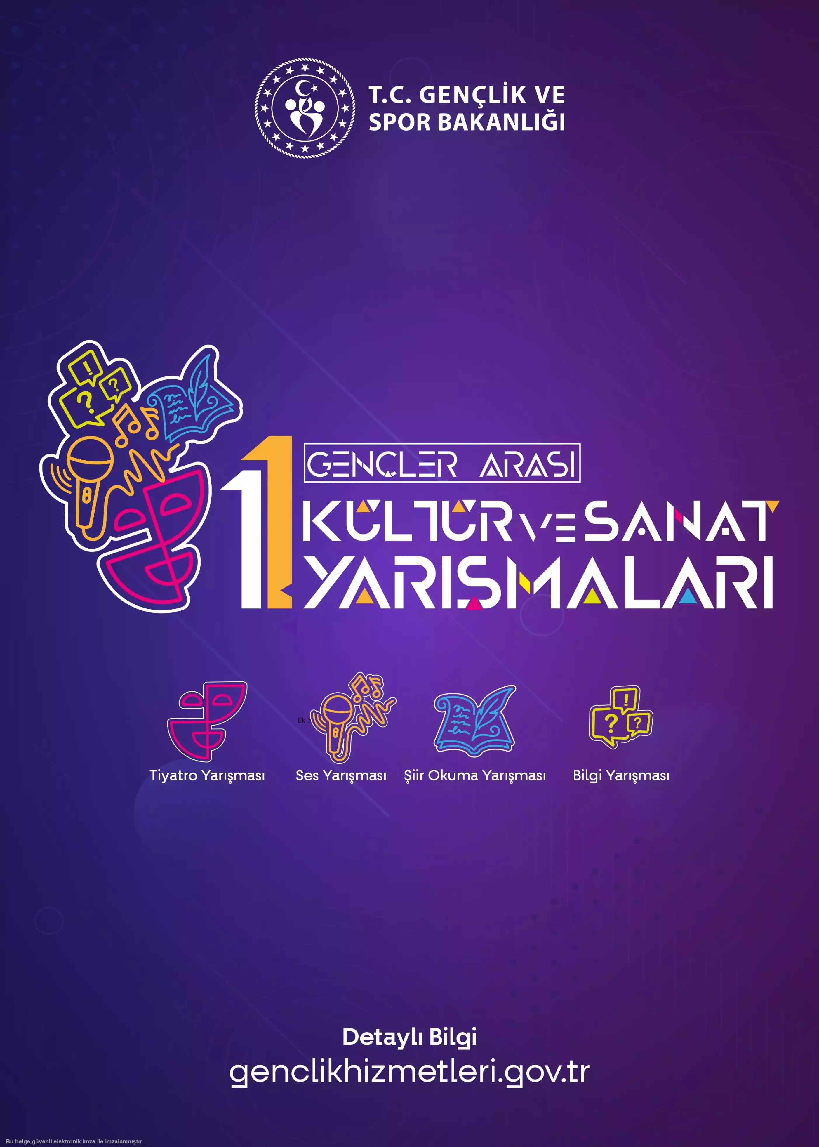 özümsenmesi amacıyla düzenlenecek olan ''Gençler Arası Kültür ve Sanat Yarışmaları'' başlığı altında Gençler Arası Şiir Okuma Yarışması ve Gençler Arası Tiyatro Yarışması ile ilgili detaylı bilgi için tıklayınız.