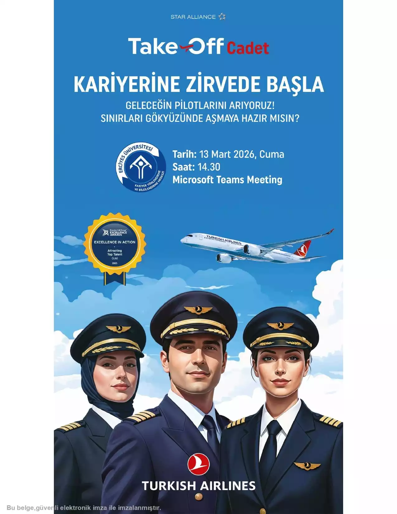 Türk Hava Yolları tarafından öğrencilerimize yönelik gerçekleştirilecek "Take Off Cadet